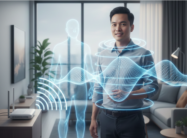 WiFi Sensing cho phép phát hiện chuyển động, nhịp thở, ngã… nhờ biến đổi sóng vô tuyến, không cần camera hay thiết bị đeo.